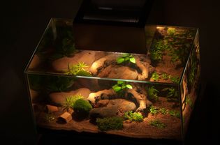 考虑使用活沙等住岩石.因为初级过滤不是一个问题,你的创作的美学优先。建议使用至少1.5英寸深的砂床,2英寸更好。10加仑的水族箱只有12英寸深,所以你必须自己判断沙子的体积。考虑建立一个自然反硝化区域。这有助于两个水箱连接到一个共同的水源,更深的砂床使这成为可能。你可以用活文石沙;然而,有很多沙子的来源还有活摇滚。从你的主水箱里放几块碎石到避难所里。再说一次,如果你用的是主水箱的过滤装置,就没有必要考虑生物因素。