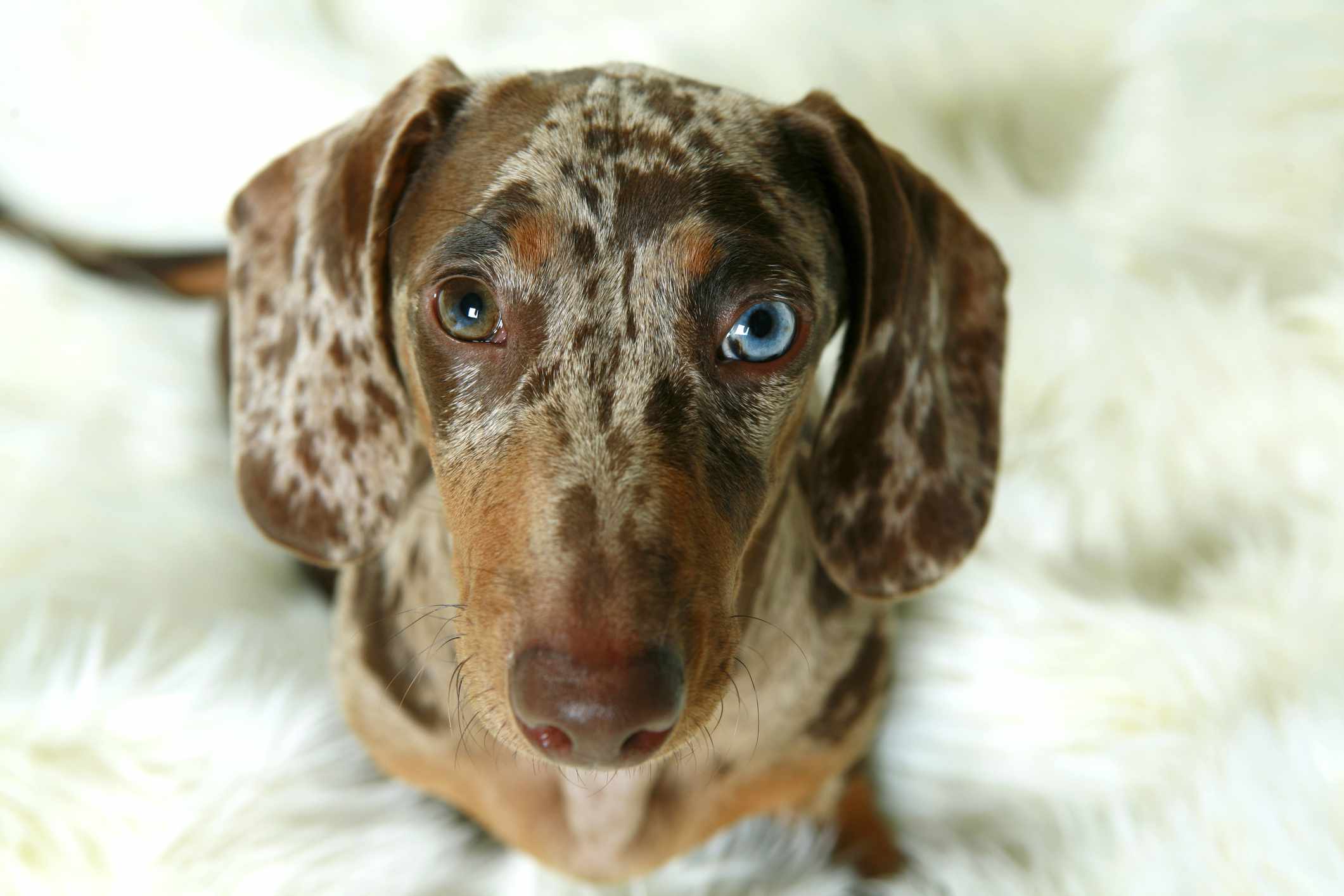 蓝色的眼睛可能并不适合腊肠犬,但它们仍然是一个美丽的特征。山鸟色的狐猸子通常会有蓝色的眼睛,包括全蓝色、一个蓝色和一个棕色,甚至一只眼睛两种颜色都有。这些狗是为了狩猎獾和兔子而饲养的,它们勇敢而吵闹,是很好的看门狗。