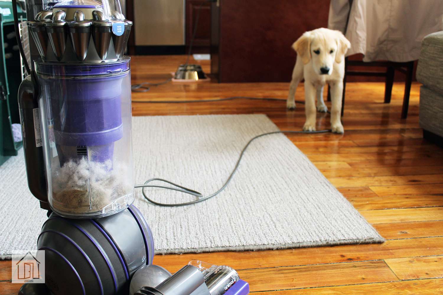 我们清空了灰尘罐(按一个按钮就能把里面的东西从底部弹出来),然后搬到了客厅的硬木地板上。说明书上说要关掉硬地板的打包机,所以我们就这么做了。这只小狗很乖撕碎毛绒玩具一段时间前,所以我们用吸尘器把所有的绒毛都吸走了。除了很容易地收集毛绒玩具,吸尘器还能吸走相当多的灰尘和其他宠物的毛发——我们发现自己甚至在问这是从哪里来的,因为地板最近被打扫过,肉眼看起来很干净。