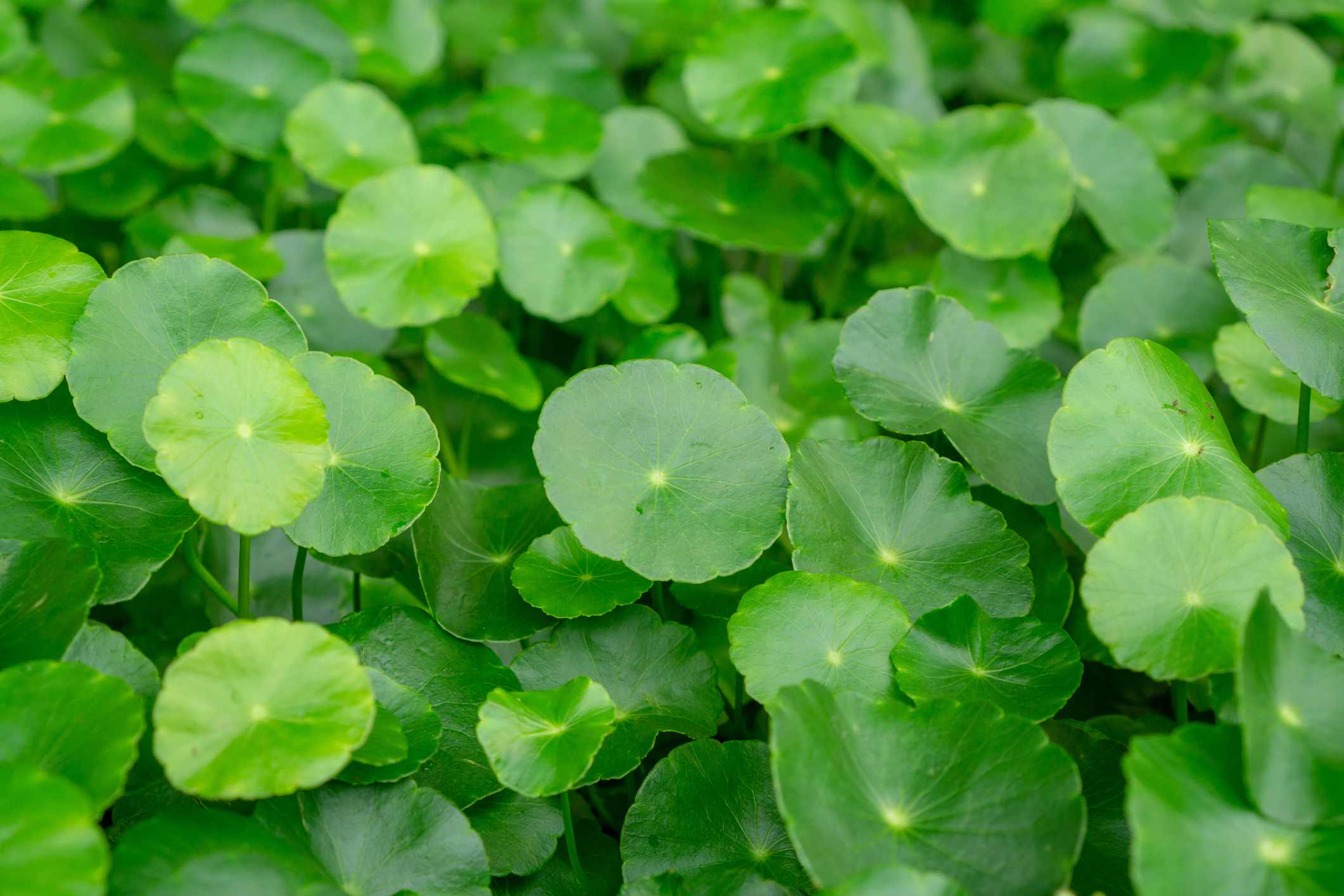 Pennywort,也被称为centella或gotukola,原产于亚洲湿地。除了看起来像小小的睡莲,这种水生植物被用于烹饪和草药。